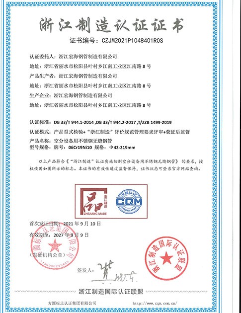 浙江宏海鋼管制造有限公司(前身為溫州市皓立不銹鋼有限公司)成立于2016年11月,公司注冊資金5180萬元,是一家集生產、銷售與一體的不銹鋼無縫鋼管及制品的民營企業。公司位于風景秀麗的甌江上游,有“江南桃源秘境”之稱的麗水市松陽縣江南工業區;交通便利,離松陽高速出口僅4公里,離衢寧鐵路松陽站僅2公里;占地面積30余畝,總投資9000多萬元。
